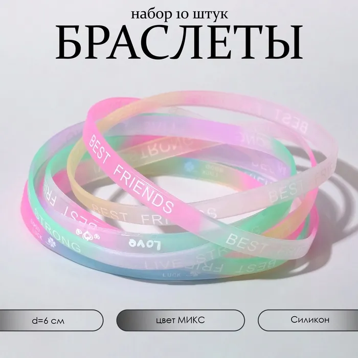 Силиконовый браслет «Светящийся» радость, набор 10 шт, цвет МИКС, 6см — Характеристики