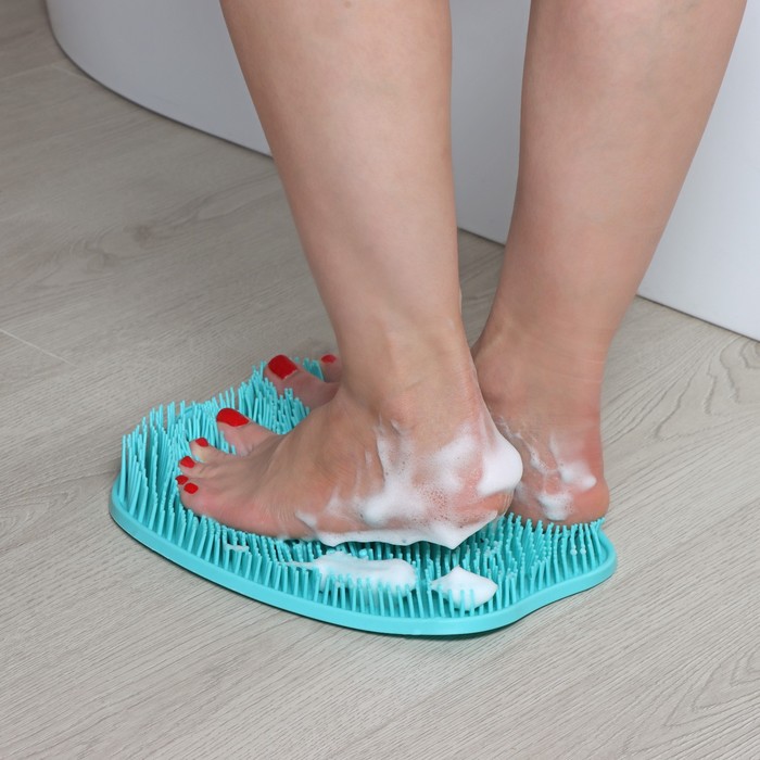 Силиконовый массажный коврик для мытья ног и тела, на присосках, цвет голубой — Характеристики