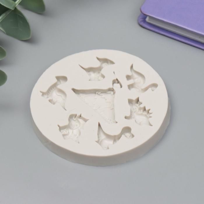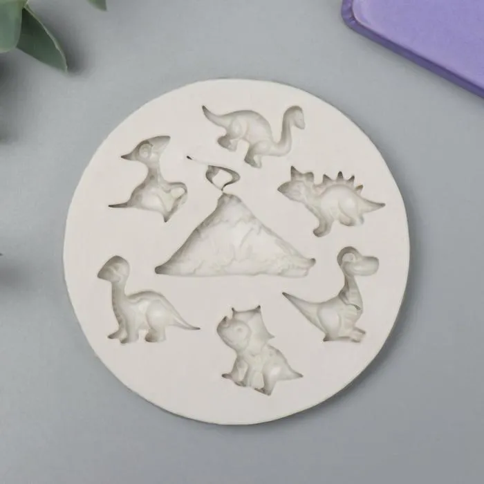 Силиконовый молд, форма для заливки «Динозаврики и вулкан», 7 предметов, 1×7.3×7.3 см — Характеристики