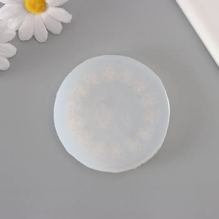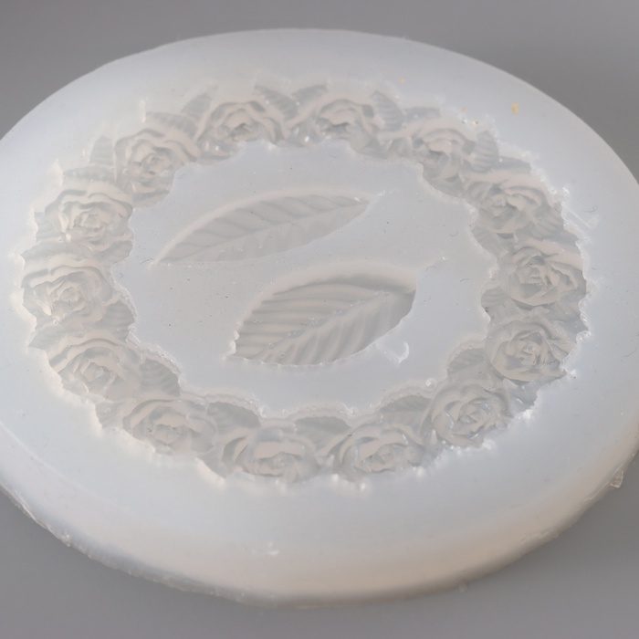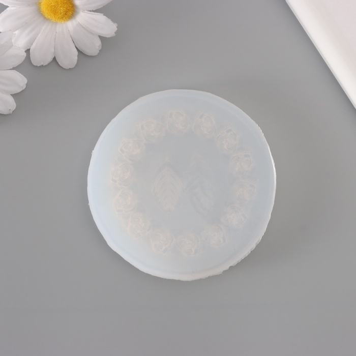 Силиконовый молд, форма для заливки «Круг из роз и листики», 3 предмета, 8.5×8.5×0.5 см — Характеристики