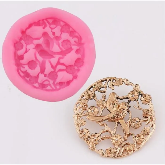 Силиконовый молд, форма для заливки «Птички в цветочных ветвях», 6.5 см