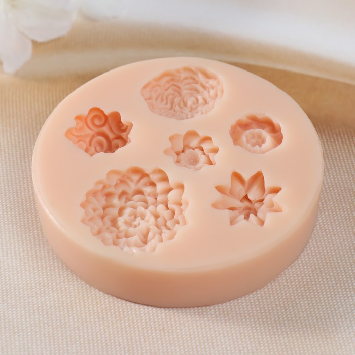 Силиконовый молд, форма для заливки «Садовые цветы», 2.4×2.4×1.4 см; 3×3×0.5 см; 2.5×2.5×0.8 см; 1.6×1.6×0.5 см; 1.7×1.7×0.5 см — Характеристики
