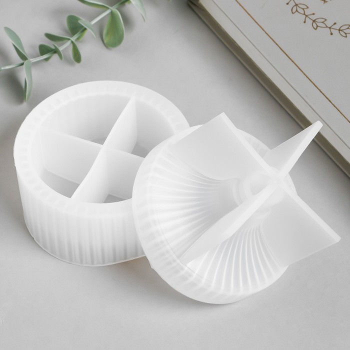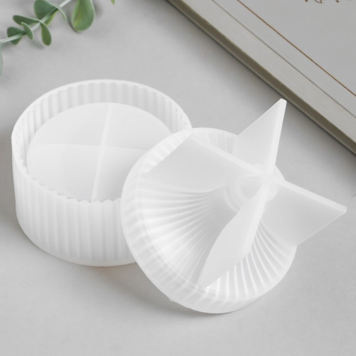 Силиконовый молд, форма для заливки «Шкатулка круглая ребристая», с крышкой, 6×6×8.3 см
