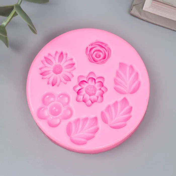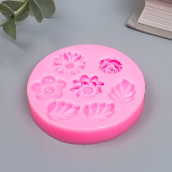 Силиконовый молд, форма для заливки «Цветочки и листочки», 7 предметов, 6.8×6.8×1 см — Характеристики