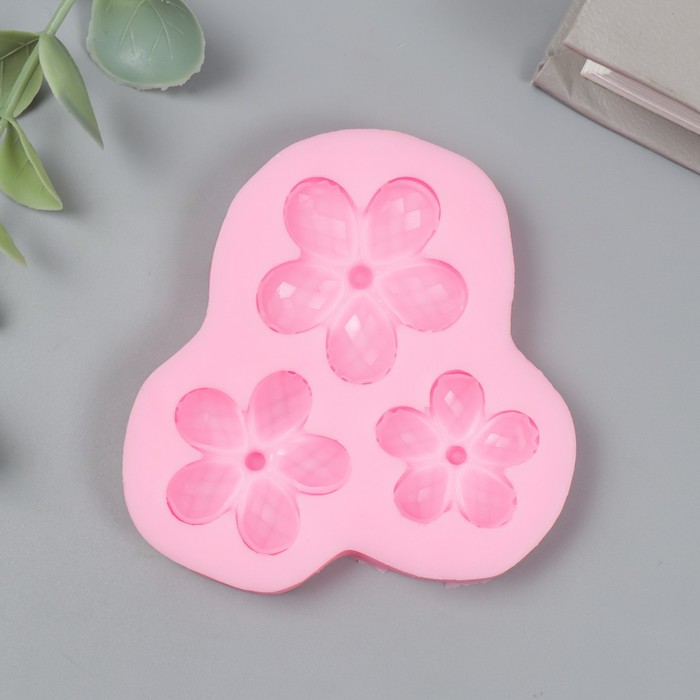 Силиконовый молд, форма для заливки «Цветочки-кристаллы», 3 предмета, 1×7.5×6.5 см — Характеристики