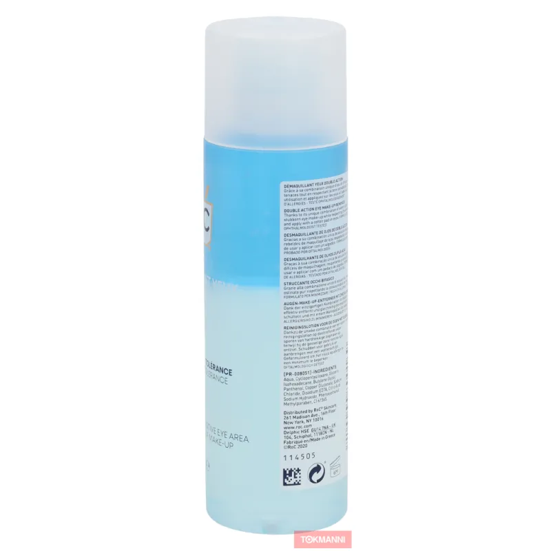 Средство для снятия макияжа с глаз ROC Double Action обеспечивает тщательное удаление макияжа, включая водостойкий макияж, не вызывая раздражения. Оно подходит для чувствительной кожи и обладает успокаивающим эффектом.