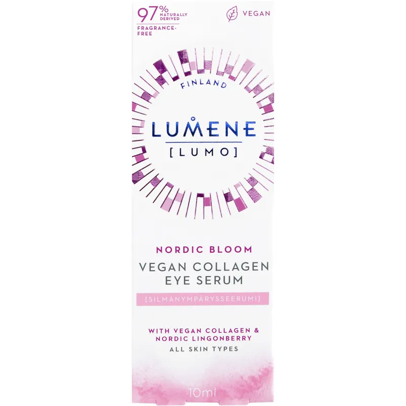 Сыворотка Lumene LUMO для кожи вокруг глаз помогает разгладить кожу и вернуть ей естественную упругость. Она делает кожу более молодой и упругой, уменьшая видимость мелких морщин и складок. Сыворотка имеет легкую текстуру и содержит северную брусничную воду, три типа гиалуроновой кислоты и веганский коллаген. Охлаждающий металлический аппликатор освежает кожу вокруг глаз.