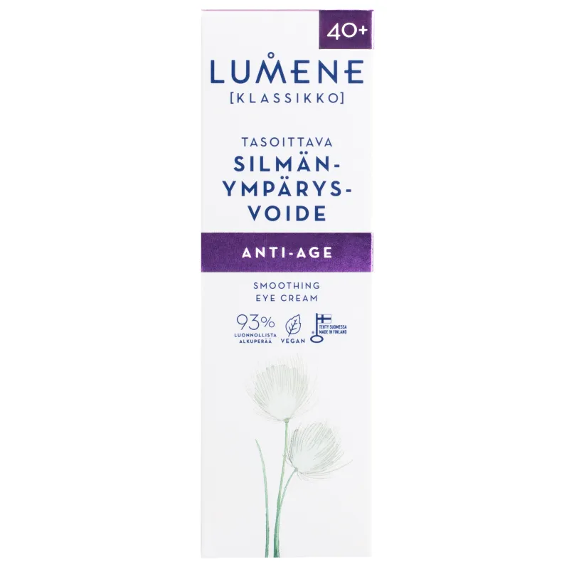 Крем для век Lumene Klassikko идеально подходит для всех типов кожи. Он превосходно увлажняет, помогает уменьшить уже появившиеся признаки старения и замедлить появление новых, делая кожу сияющей и молодой. В состав крема входят северный пух и чистая северная родниковая вода, которые вместе увлажняют, защищают и питают кожу. Результат - красивая и здоровая кожа вокруг глаз. Продукция Lumene Klassikko производится в Финляндии с упором на чистые, эффективные и натуральные ингредиенты.