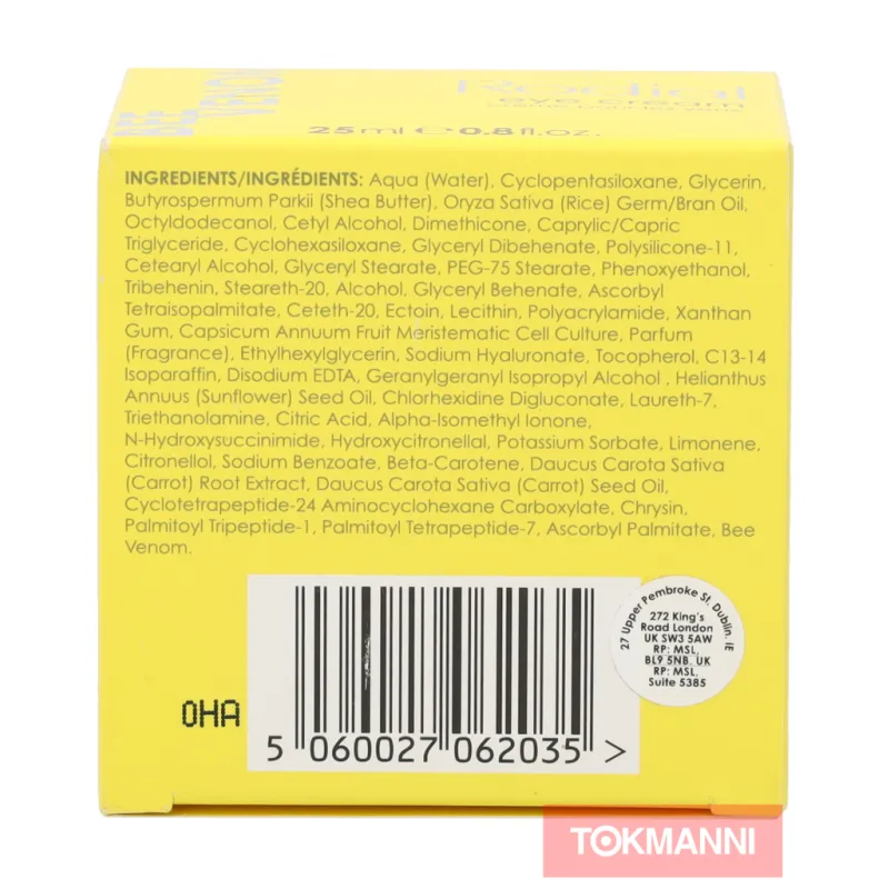 Этот крем весит всего 0.0375 кг, но его эффект не оставит вас равнодушными. Пчелиный яд, входящий в состав, стимулирует производство коллагена и эластина, делая кожу вокруг глаз более упругой и гладкой. Используя крем ежедневно, вы сможете заметить изменения уже через несколько недель.