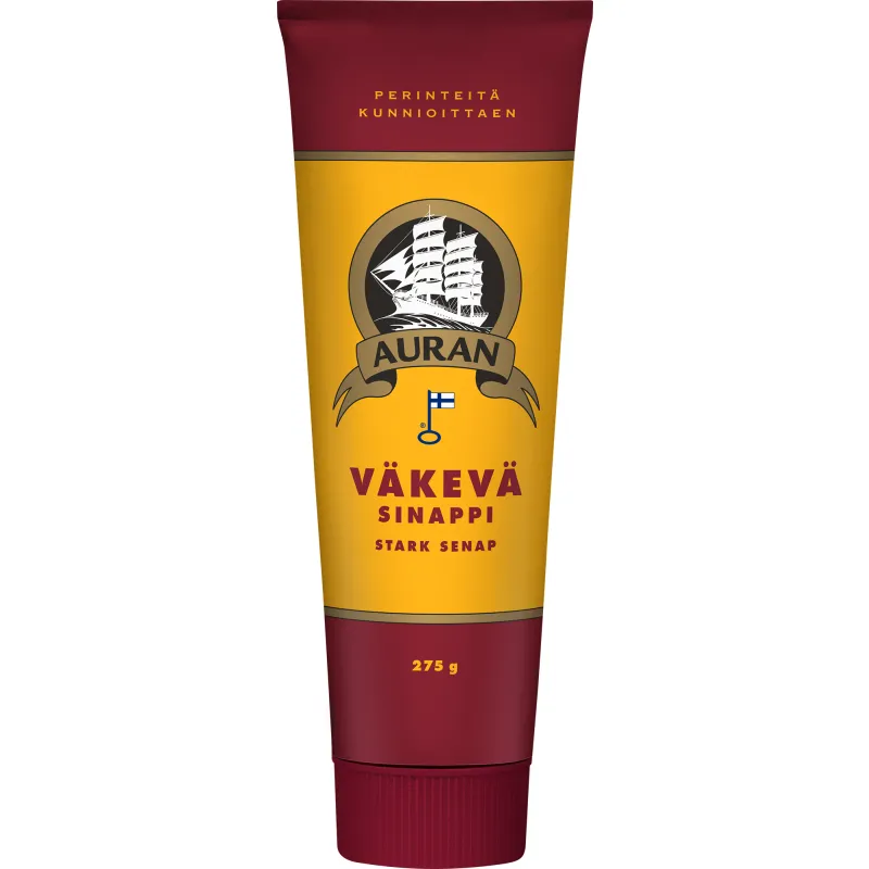 Горчица Auran крепкая изготавливается в финском Турку с уважением к традициям. Упаковка объемом 275 г.