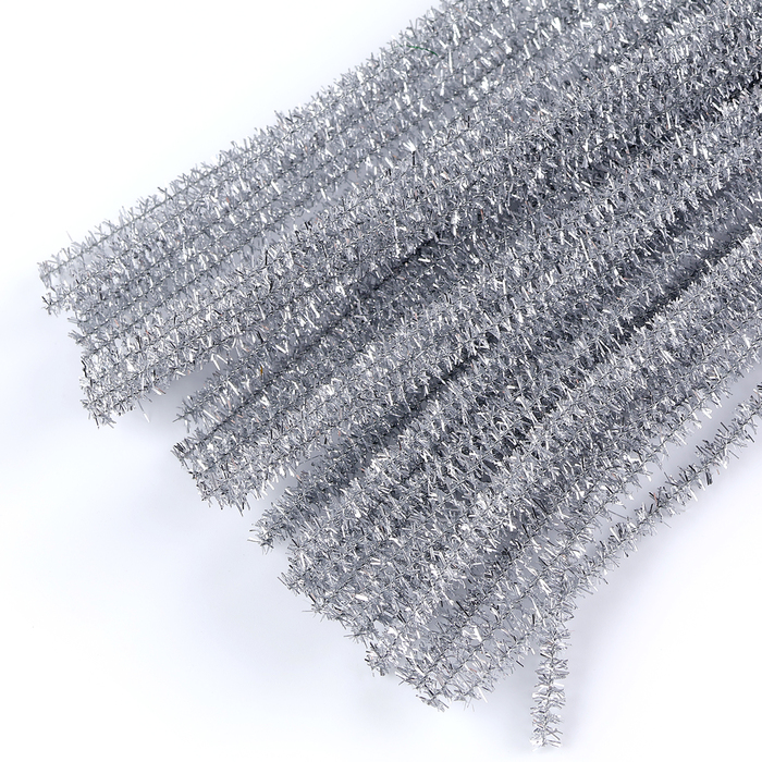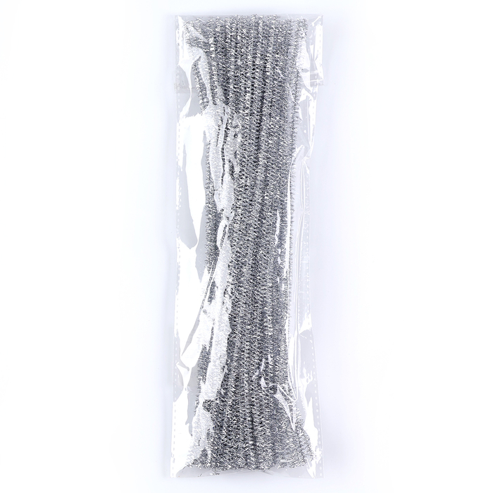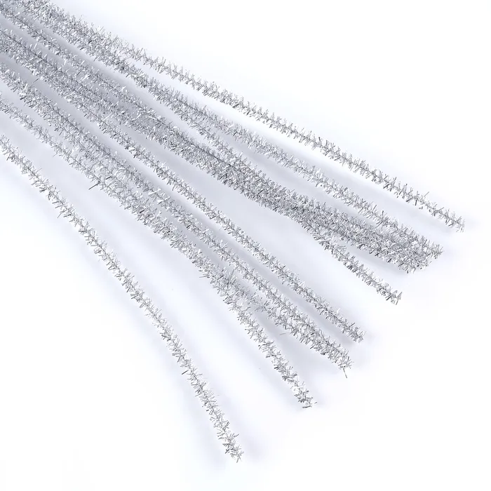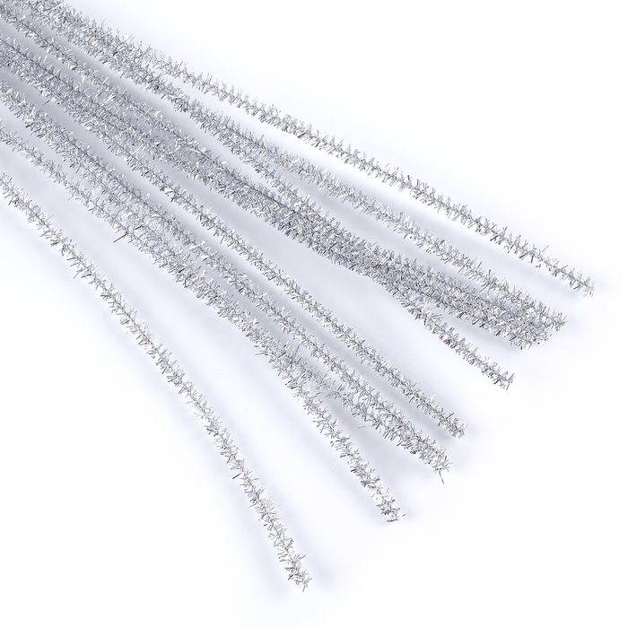 Синельная проволока с ворсом «Блеск», набор 50 шт., размер 1 шт.: 30×0.6 см, цвет серебро, для поделок