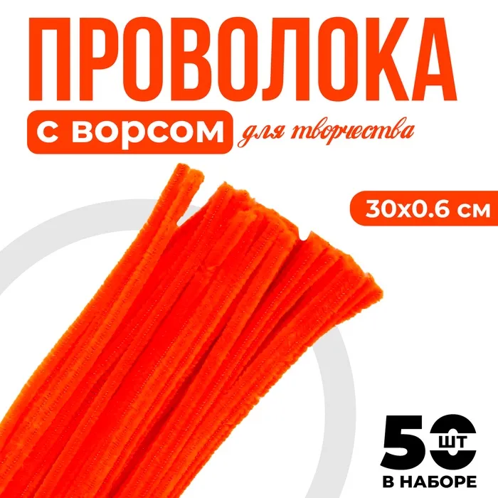 Синельная проволока с ворсом для поделок и декора набор 50 шт., размер 1 шт. — 30×0.6 см, цвет оранжевый — Характеристики