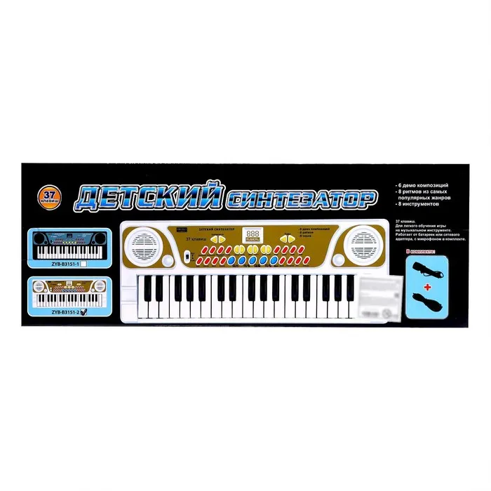 Синтезатор «Детский», 37 клавиш, с микрофоном, цвет белый — Характеристики