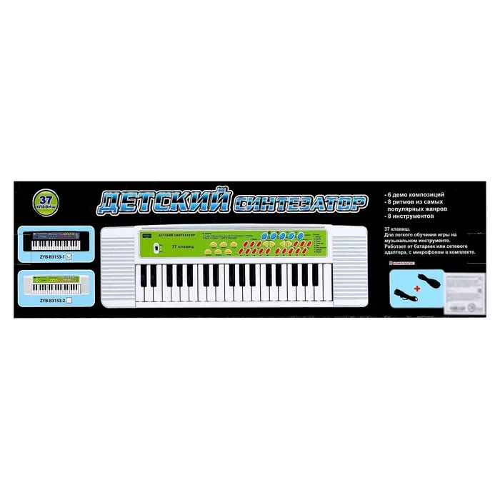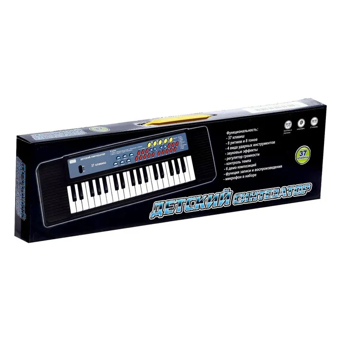 Синтезатор «Детский», 37 клавиш, с микрофоном, цвет чёрный — Характеристики
