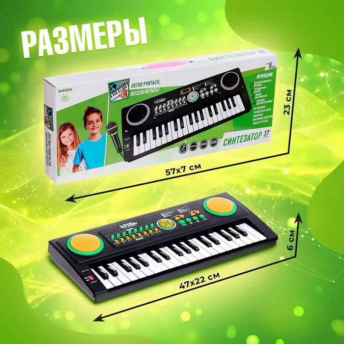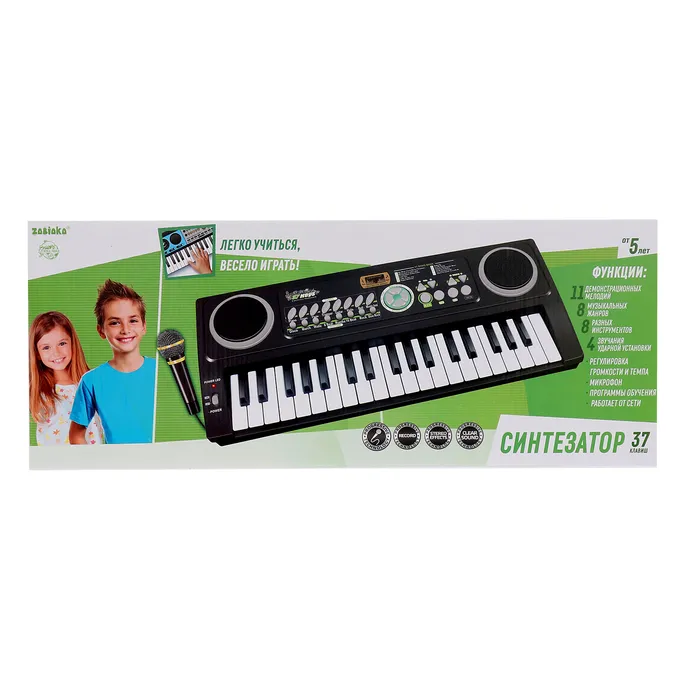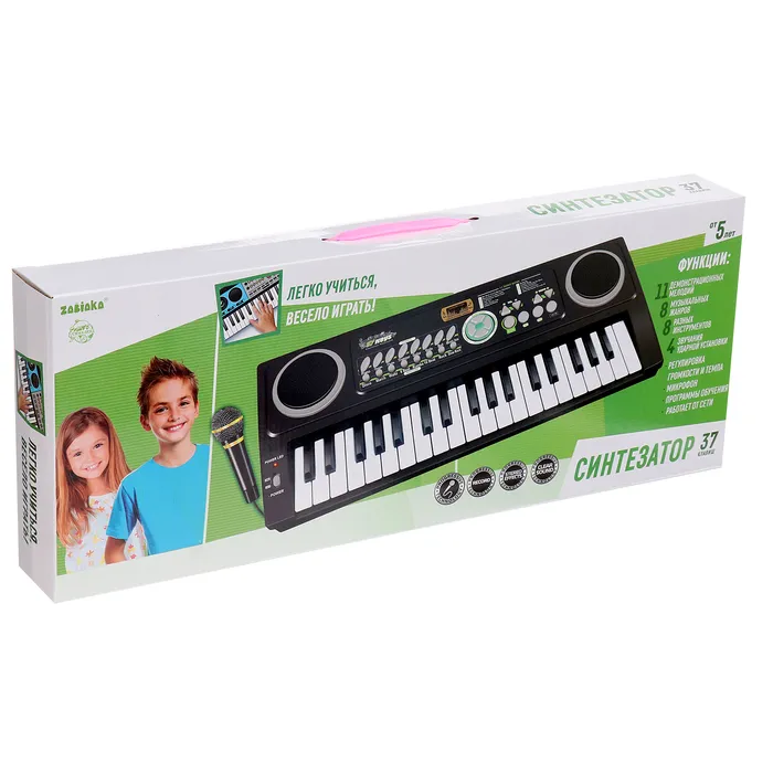 Синтезатор «Супер музыкант» с микрофоном, 37 клавиш, работает от сети и от батареек — Характеристики