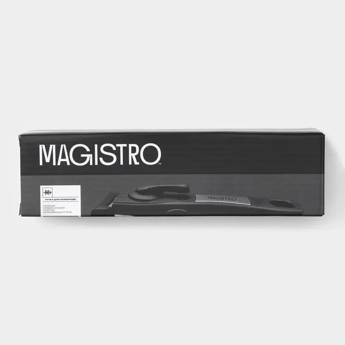 Ручка для посуды Magistro — это универсальное решение для вашей кухни. Она выполнена из нержавеющей стали и пластика. Благодаря своей съёмной конструкции, она легко устанавливается на кастрюли, сковороды и другую кухонную утварь.