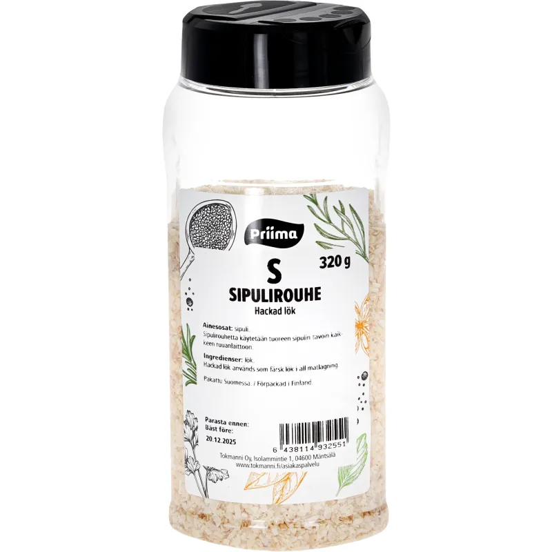 Priima Луковая крошка используется как свежий лук в любых кулинарных рецептах. Удобная двухсекционная крышка для дозирования. Размер упаковки 320 г.