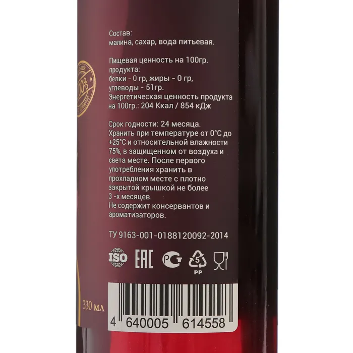 Сироп из малины — это насыщенное и ароматное дополнение к любым десертам и напиткам. Сочный вкус свежей малины придаёт сиропу яркий и насыщенный аромат, который идеально сочетается с мороженым, блинами, вафлями и йогуртом. Используйте сироп из малины для приготовления коктейлей, лимонадов или добавляйте его в чай, чтобы придать напиткам свежесть и легкую сладость.