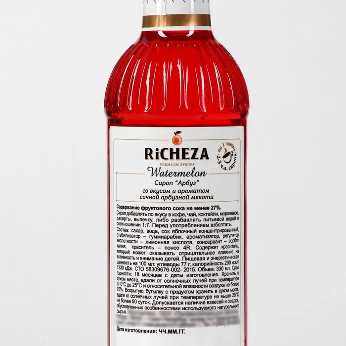 Погрузитесь в мир свежести и сладости с сиропом RICHEZA «Арбуз» и наслаждайтесь восхитительными моментами, созданными с его помощью!