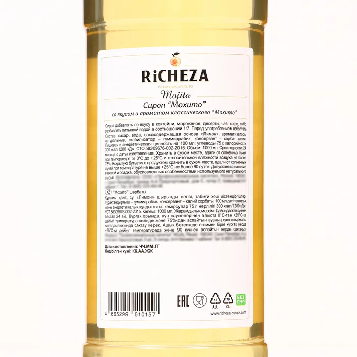 «Мохито» от RiCHEZA открывает линейку уже готовых напитков, а не просто сиропов. Достаточно просто добавить к нему прохладной газированной воды в соотношении 1:6 и вы получите великолепный классический «Мохито»! В качестве сиропа он может быть добавлен к мороженому, холодному чаю, фруктовым коктейлям и смузи для придания мягкого освежающего вкуса.