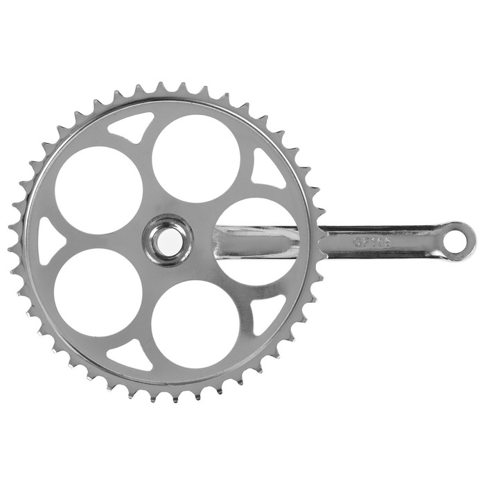 Система шатунов подойдёт для скоростных велосипедов для педали под резьбу 9/16. Система имеет 1 звезду и заглушки, подойдёт под клиновую каретку. Материал изделия – сталь.