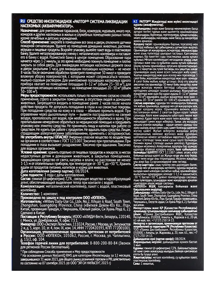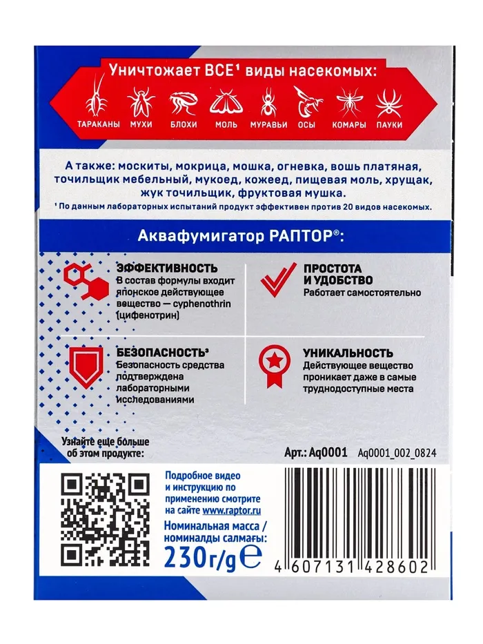 Система ликвидации насекомых Раптор аквафумигатор от тараканов, муравьев, пауков — Характеристики