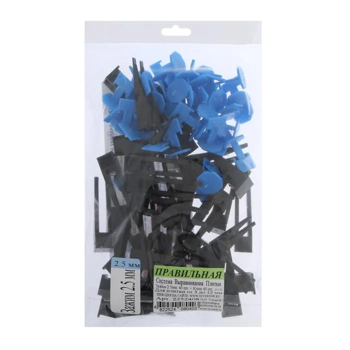 Система выравнивания плитки "ПСВП", зажим 2.5 мм + клин (40+40 шт.), пакет — Характеристики