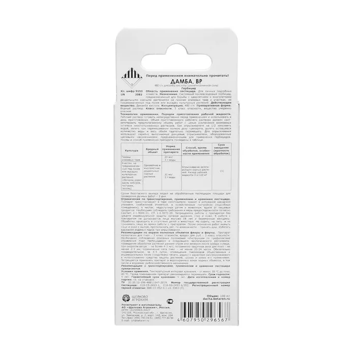 Проявляет высокую биологическую эффективность против широкого спектра двудольных сорняков, включая наиболее проблемные - бодяк, вьюнок и др.