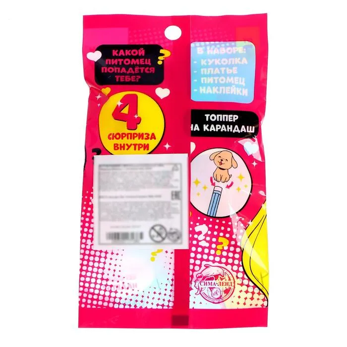 У куколки красивый наряд и длинные волосы. Также в комплекте есть одно дополнительное платье, яркие наклейки и питомец. Используйте щенка как топпер на карандаш. Высота куколки — 8,5 см.