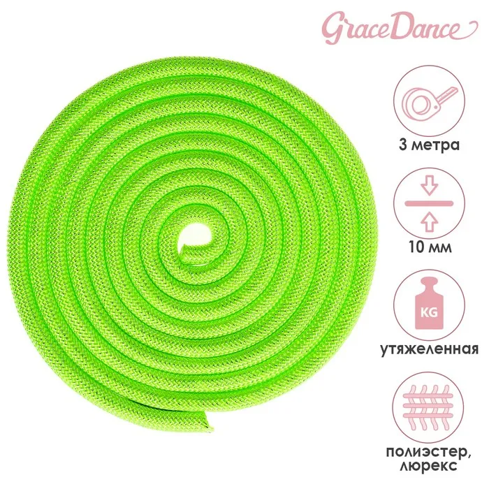 Скакалка для гимнастики утяжелённая с люрексом, 3 м, цвет салатовый — Характеристики