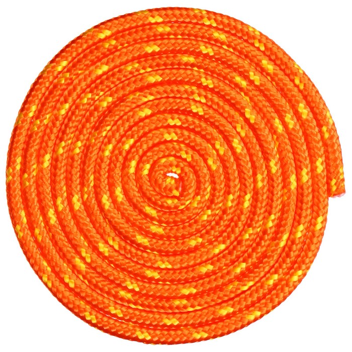 Скакалка предназначена для тренировки юной гимнастки. Яркий цвет инвентаря дополнит образ спортсменки.
