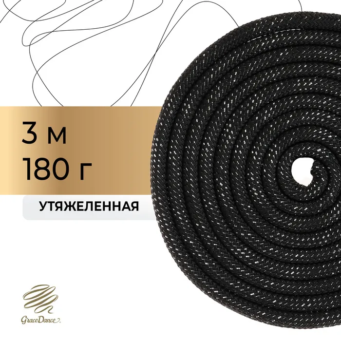 Скакалка для художественной гимнастики утяжелённая Grace Dance, 3 м, цвет чёрный — Характеристики