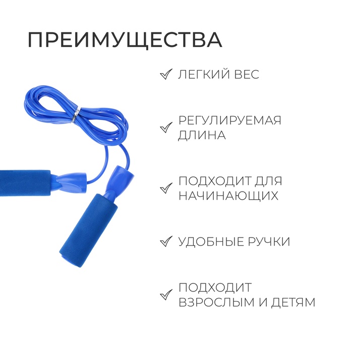 Скакалка ONLYTOP, 2.8 м, цвета МИКС — Характеристики