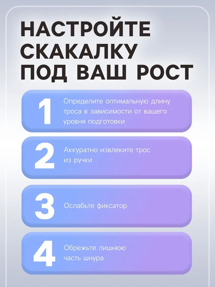 - Регулируемая длина – позволяет подстроить скакалку под индивидуальные параметры пользователя.