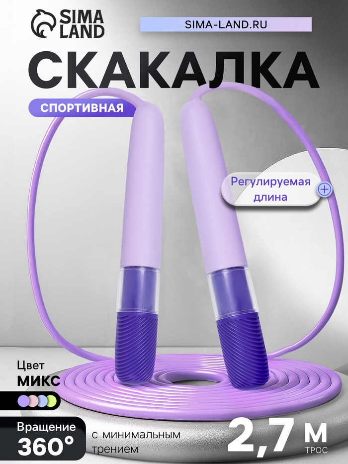 Скакалка спортивная, 2.7 м, регулируемая, цвет МИКС — Характеристики