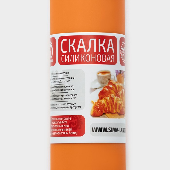 Скалка Доляна «Севилья», 43×5 см, рабочая часть 19,5 см, цвет оранжевый — Характеристики
