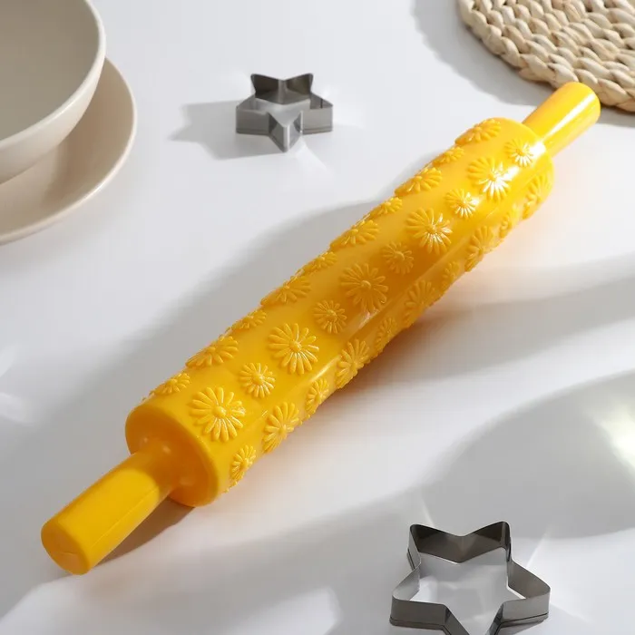 Скалка кондитерская «Ромашки», 37 см, рабочая часть 25 см, фактурная, цвет МИКС — Характеристики
