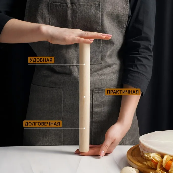 Скалка прямая Доляна, 30×3 см, берёза — Характеристики