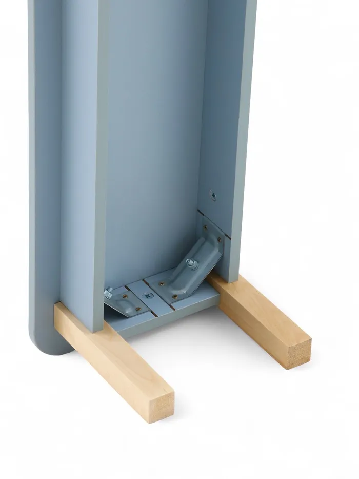 Предназначена для обустройства детских раздевалок и игровых зон. Изделие выполнено в светлых пастельных тонах, что делает его визуально лёгким и гармоничным для интерьера детских учреждений. Каркас изготовлен из массива берёзы с защитным лаковым покрытием, поверхность дополнена элементами из ЛДСП.