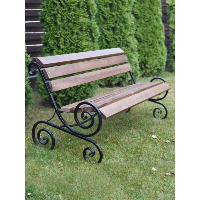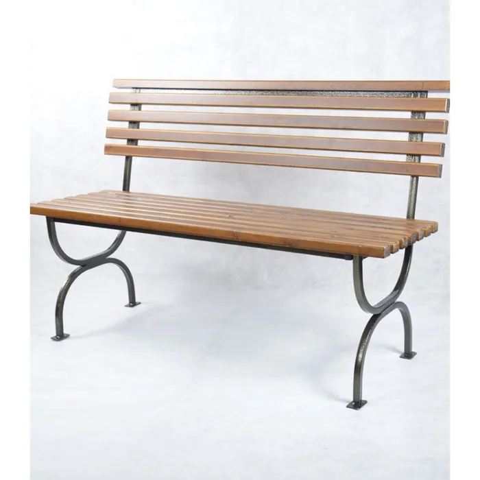 Каркас изготовлен из качественного стального профиля, покрытого порошковой краской. Все поверхности изготовлены из древесины хвойных пород. Для защиты деревянных элементов от неблагоприятного воздействия внешней среды, различных вредителей и грибков, произведена обработка антисептической пропиткой, и выполнено покрытие лаком.