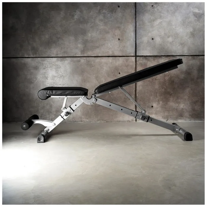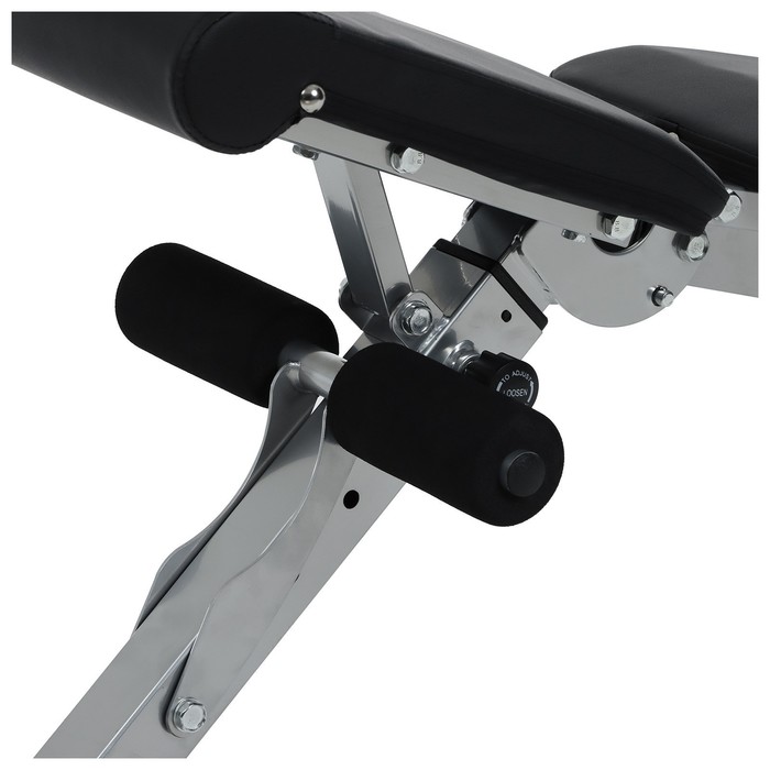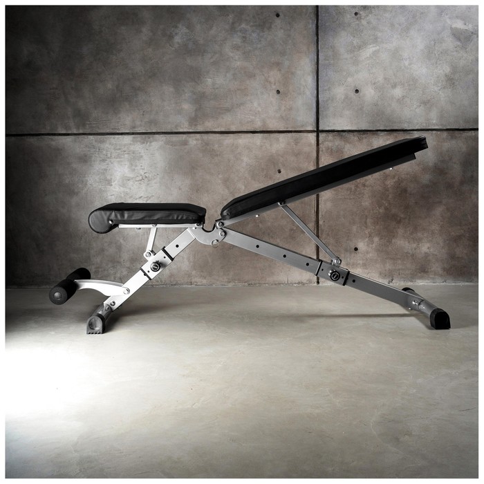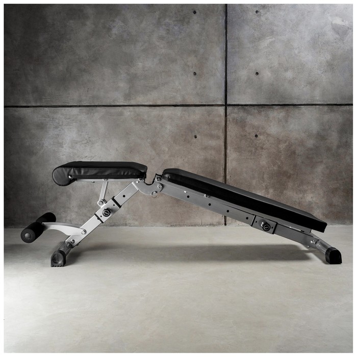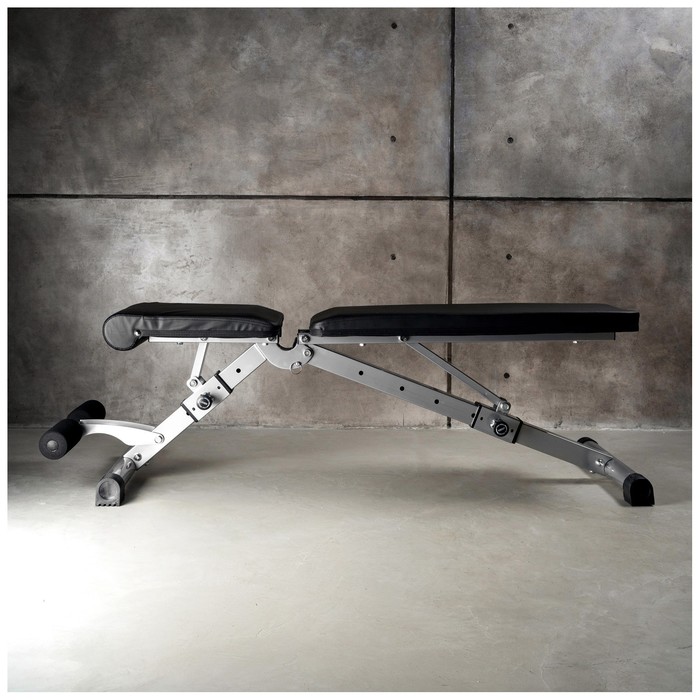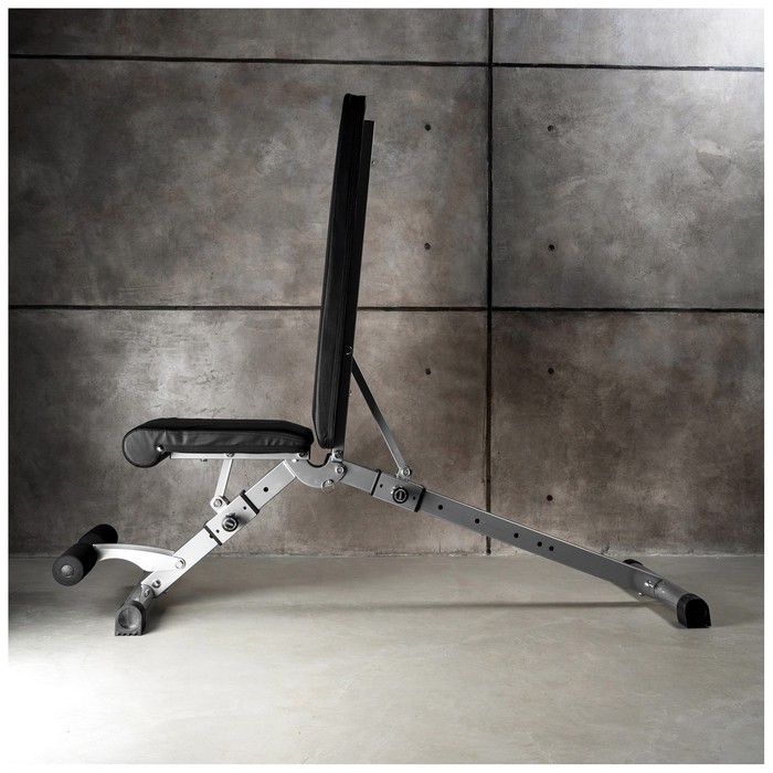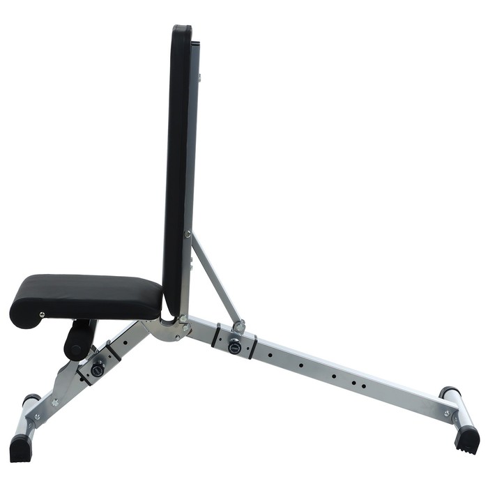 Силовая скамья с упором для ног подойдёт для спортзала и домашнего использования. Имеет отдельные сиденье и спинку с возможностью регулировки при помощи фиксатора на опорах скамьи. Это позволит выполнять упражнения на различные группы мышц и повышать выносливость.