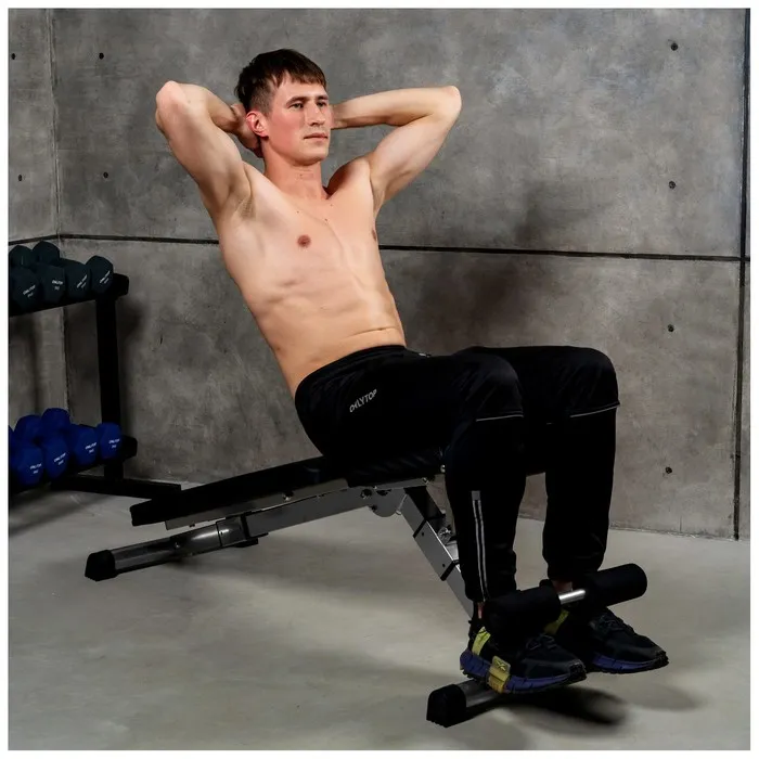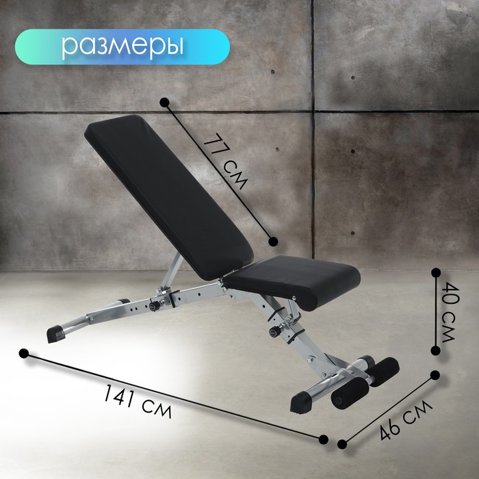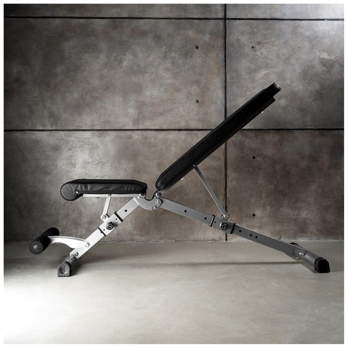 Рама скамьи изготовлена из стального профиля, сиденье и спинка покрыты нескользящим материалом с надёжной обивкой. За счёт этого вам будет комфортно и безопасно выполнять упражнения.