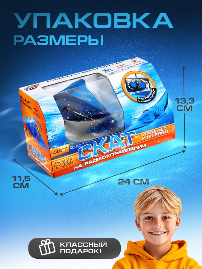 Скат на радиоуправлении, световые эффекты, работает от аккумулятора — Характеристики