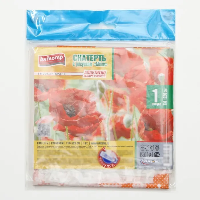 Скатерть без основы одноразовая «Маки», 110×220 см, МИКС — Характеристики