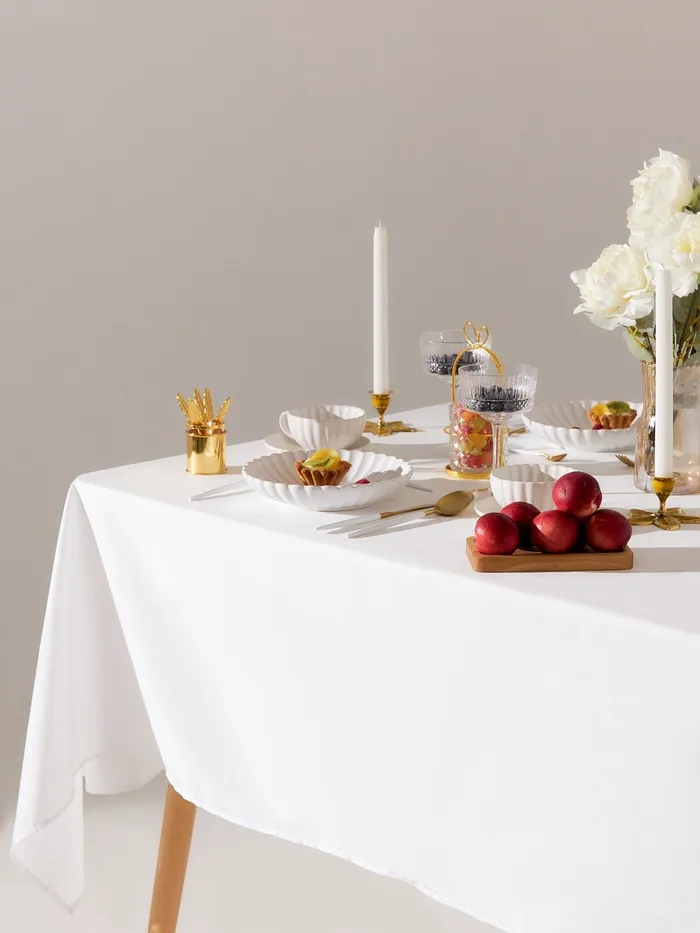 Скатерть Доляна 145×220±3 см, 35% хлопок, 65% П/Э, плотность 120 г/м² , белая — Характеристики