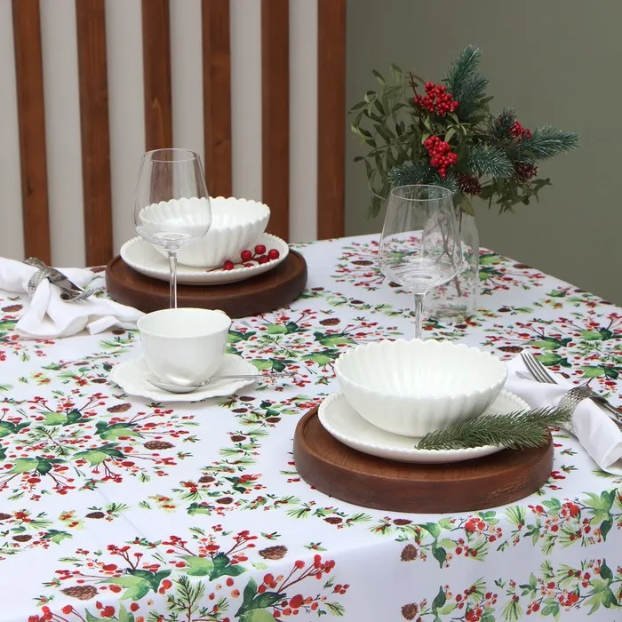 Скатерть Доляна «Хвойный узор» 145×180 см, 100% п/э — Характеристики