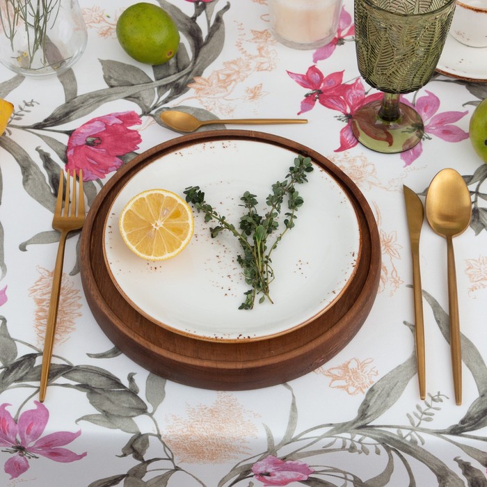 Скатерть из коллекции «Доляна» — это простое решение для смены обстановки. Её растительный узор впишется в повседневную сервировку и станет удачным фоном для праздничного стола, например, к 8 Марта. Материал полиэстер легко отстирывается от повседневных загрязнений, а глажка при средней температуре быстро возвращает ему безупречный вид. Это выбор для тех, кто ценит в вещах стиль, не требующий сложного ухода.