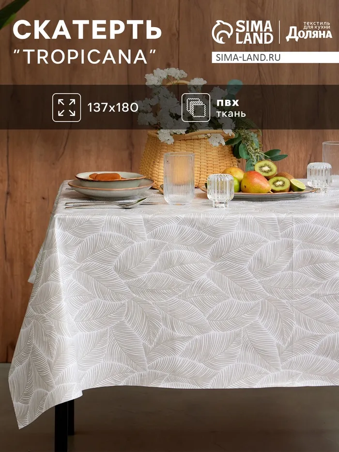 Скатерть «Доляна. Магнолия», 146×220 см, рогожка 158 г/м², 50% хлопок, 50% п/э — Характеристики