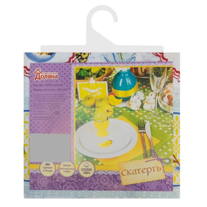 Скатерть «Доляна. Пасха», 145×144 см, 100% хлопок, рогожка, 164 г/м² — Характеристики