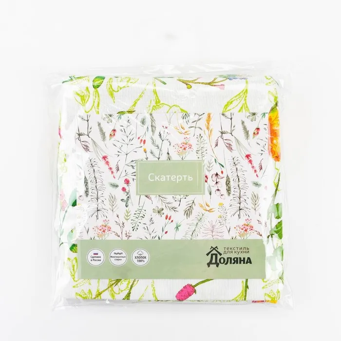 Скатерть «Доляна. Полевые цветы», 220×144 см, 100% хлопок, рогожка, 164 г/м² — Характеристики